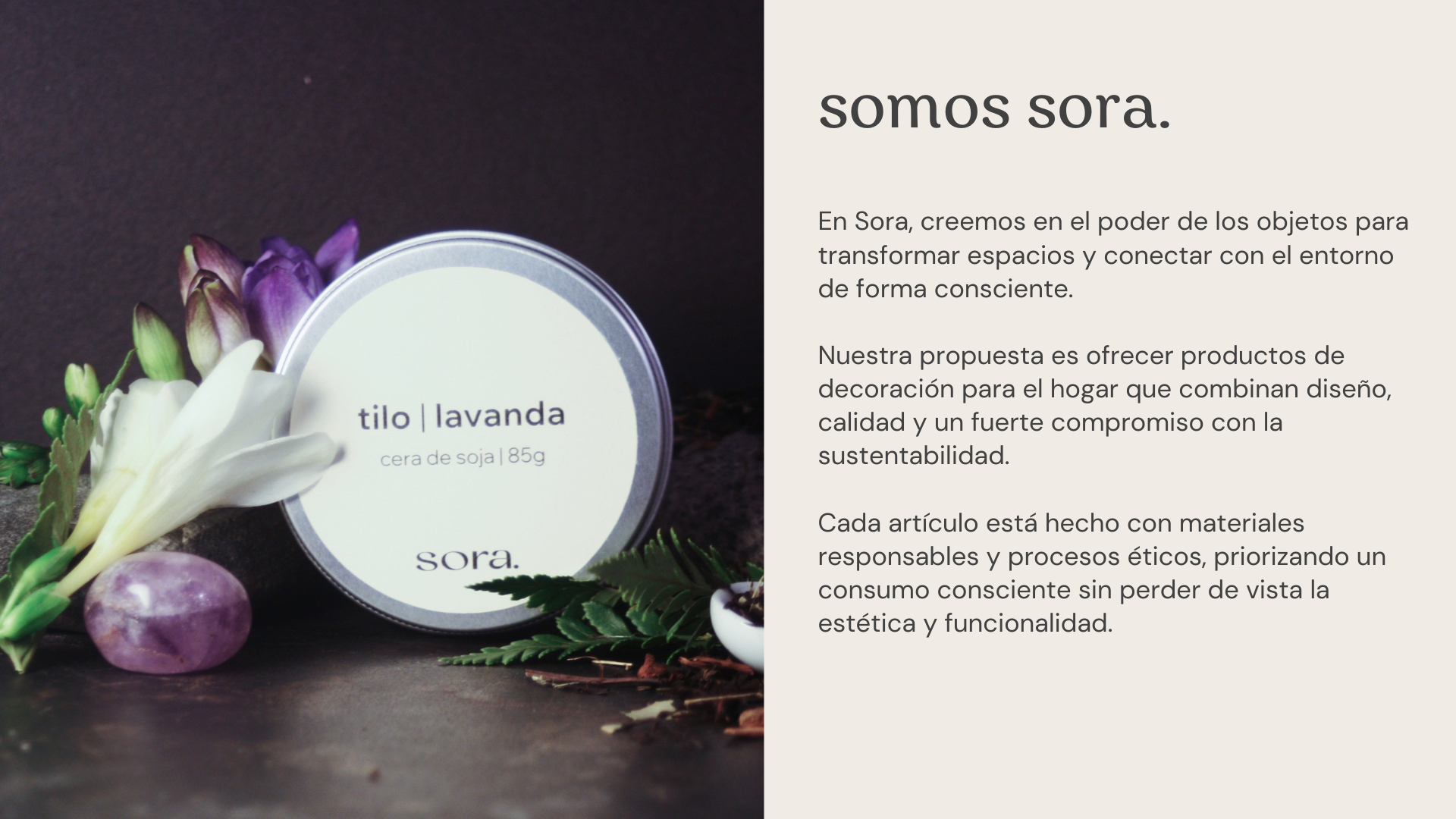 En Sora, creemos que los objetos que nos rodean no solo embellecen nuestros espacios, sino que también pueden hacer la diferencia en cómo nos conectamos con el mundo. Somos una marca dedicada a ofrecer productos de decoración para el hogar que combinan diseño, calidad y compromiso con el medio ambiente. Desde nuestros inicios, tuvimos por objetivo crear piezas que representen un estilo de vida más consciente, sin dejar de lado la funcionalidad ni la estética.